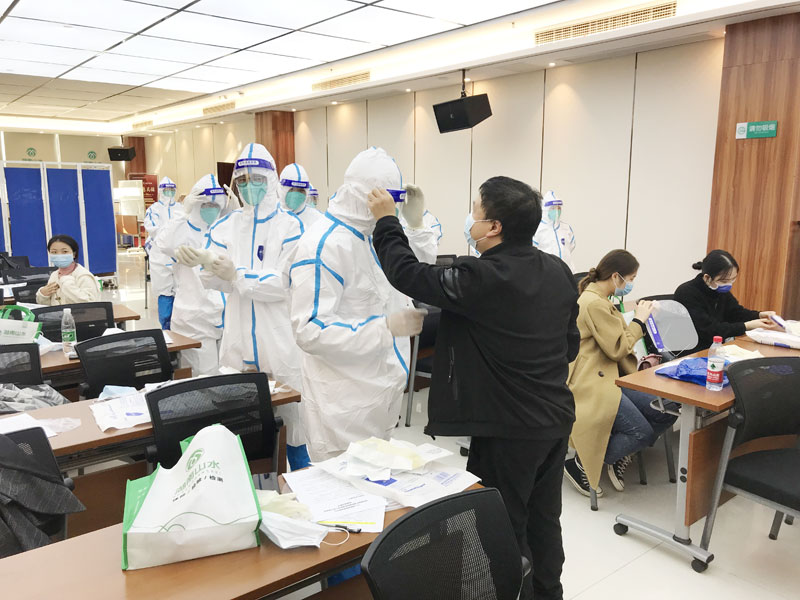随後進入到(dào)防護服穿脫講解流程,培訓老師(shī)彭重傑耐心指導學員進行(xíng)防護服細節調整。