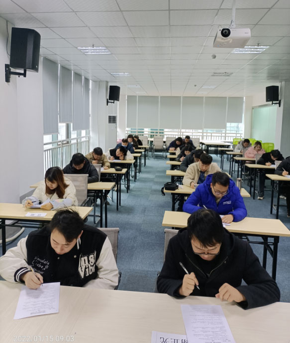 2022年1月(yuè)15日上(shàng)午,潔淨環境檢測技能(néng)比武筆(bǐ)試考試正式舉行(xíng)。在嚴明(míng)的(de)紀律約束下,每位考試人(rén)員認真思考仔細作答,考出自己的(de)真實水(shuǐ)平,從理(lǐ)論知識上(shàng)查漏補缺。