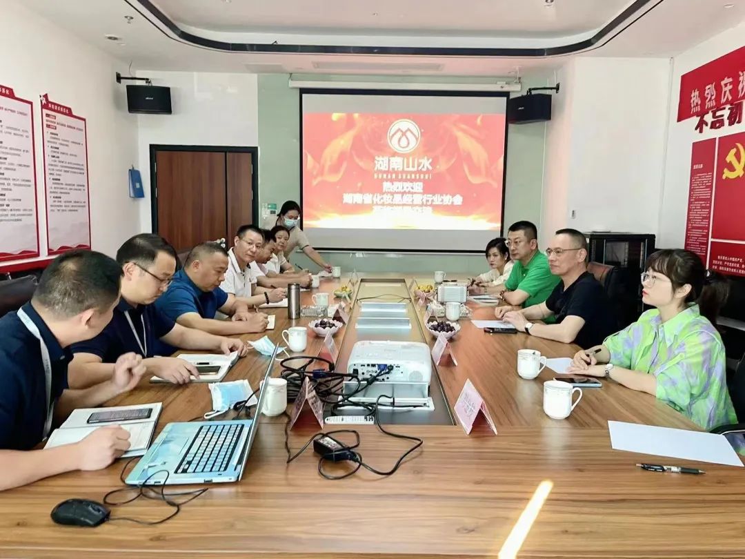 湖南省化妝品經營行(xíng)業(yè)協會(huì)會(huì)長易敬平一行(xíng)到(dào)湖南山水(shuǐ)集團走訪交流