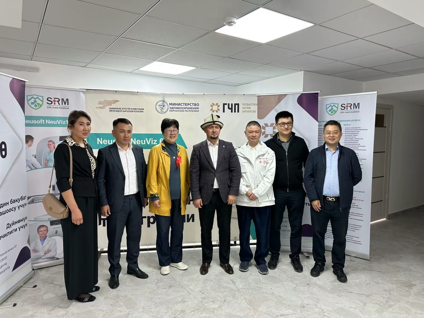 2023年9月(yuè)底,山水(shuǐ)絲路(lù)在吉爾吉斯斯坦的(de)第三、四家CT影像中心正式開(kāi)業(yè),同步啓用(yòng)中國東軟高(gāo)端CT,爲吉爾吉斯斯坦提供頂尖設備,使當地(dì)診療水(shuǐ)平更上(shàng)一個(gè)層次。國際神經科學研究所教授、首都(dōu)醫科大(dà)學宣武醫院神經外科首席專家淩鋒教授、吉爾吉斯斯坦PPP辦公室主任Sanjar、衛生部部長Alymkadr、衛生部副部長Ulan 、楚河區區長Almas、巴雷克奇市市長Azamat、卡達姆紮伊區區長Kutpidin、卡達姆紮伊地(dì)區醫院院長Mirlan等受邀出席了揭牌儀式。