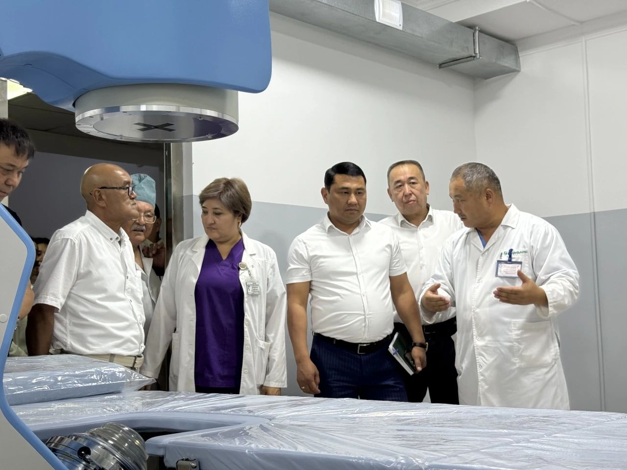 開(kāi)業(yè)儀式上(shàng),吉爾吉斯斯坦衛生部部長、國家醫院院長及賈拉拉巴德州立醫院院長、泌尿外科中心主任以及山水(shuǐ)絲路(lù)公司總經理(lǐ)周敏等作爲重要嘉賓出席了剪彩儀式。作爲當地(dì)醫療技術(shù)的(de)重磅升級,吉爾吉斯斯坦衛生部部長帶領相(xiàng)關人(rén)員,針對碎石機的(de)操作技巧、不同部位結石碎石體位選擇以及定位碎石角度等技術(shù)細節進行(xíng)參觀,并給予了詳細指導。